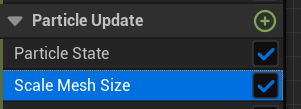 Particle Update+를 클릭해 Scale Mesh Size를 선택한다.