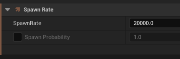 Emitter Update에 Spawn Rate를 추가하고 20000으로 해준다.