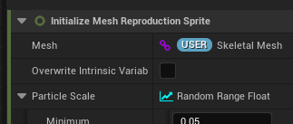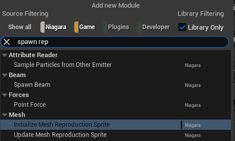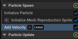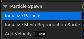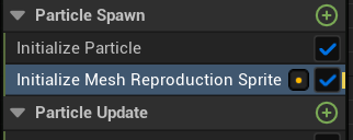 Particle Spawn에 Initialize Mesh Reproduction Sprite를 추가합니다.