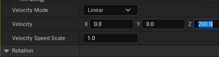Add Velocity를 추가하고 Z를 200으로 한다.