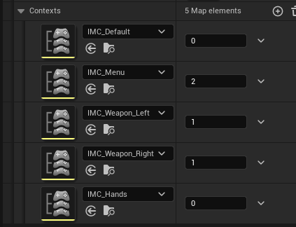 VR컨트롤러 입력이 안되는 이유는 Plugins OpenXR Input이 PMI_VRTemplate로 설정되어 있어서 그럼 상황에 맞게 IMC를 스위칭 해줌 우선순위 설정이 됨