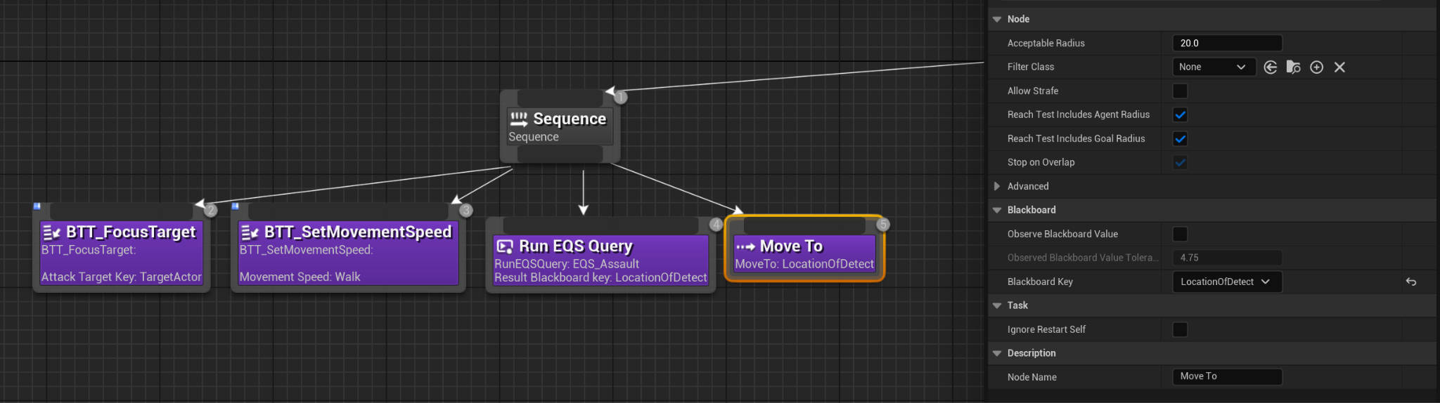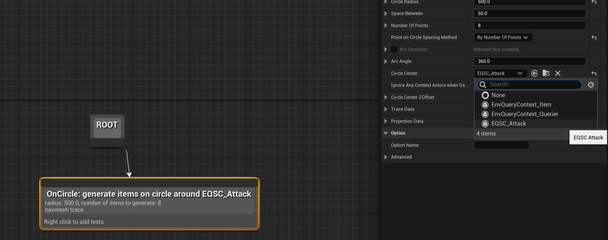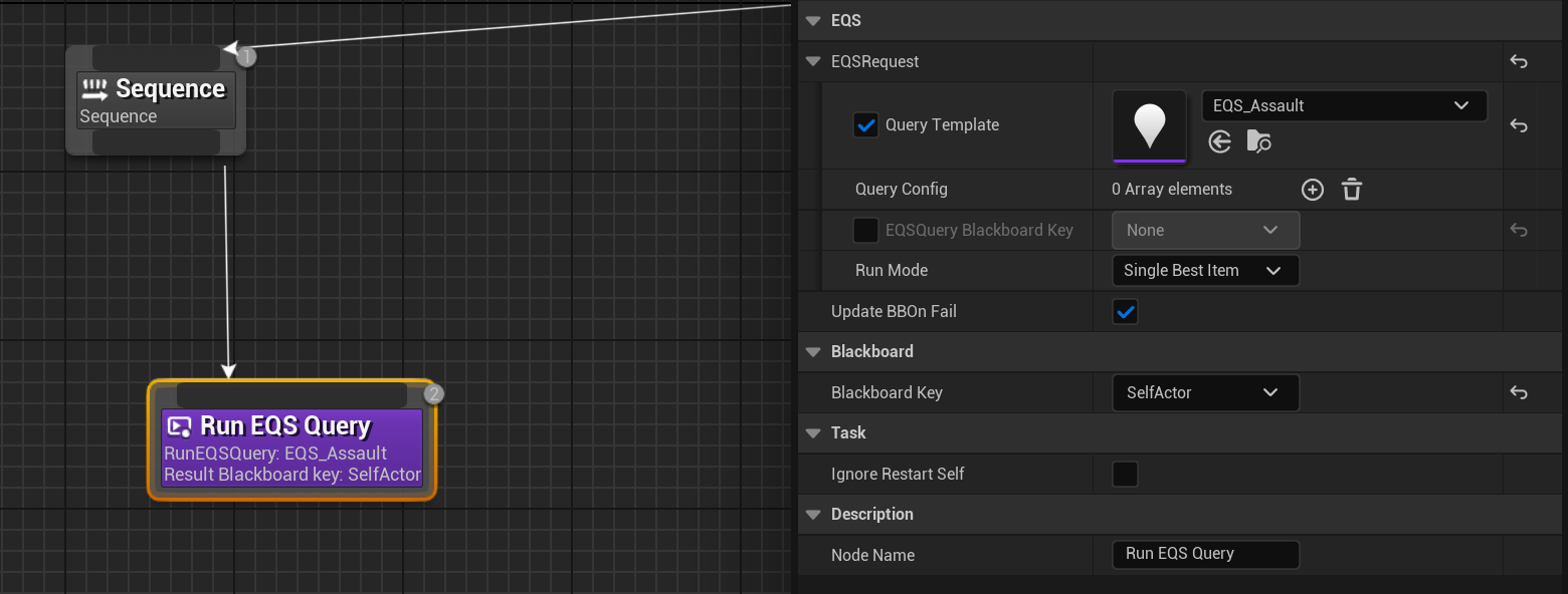 BT_Enemy_Base로 가 테스트용 Sequece를 만들고 Run EQSQuery를 추가해준다.