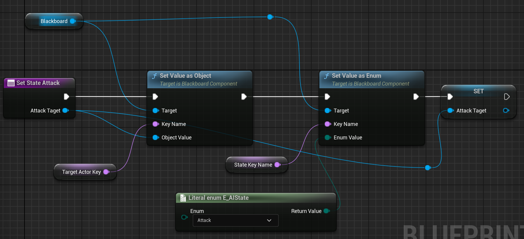 AIC_Enemy_Base Set State Attack함수로 이동해서 입력변수 AttackTarget을 변수로 승격시켜줍니다.