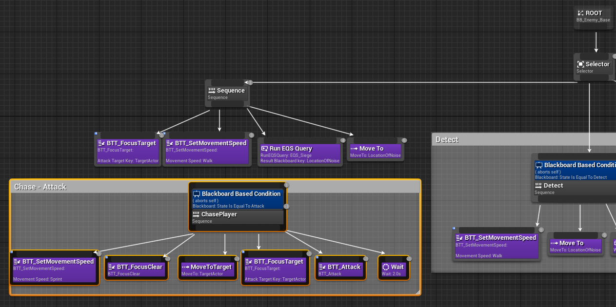 실행이 잘안되면 BT_Enemy_Base에서 맨왼쪽 블록을 끊고 테스트용 Sequece를 연결해준다