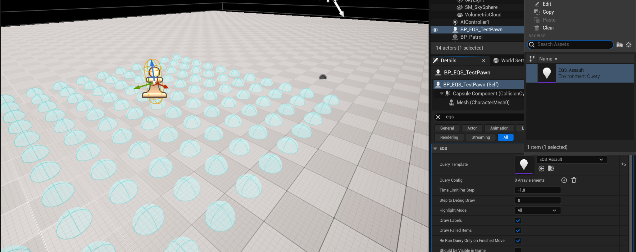 실행해 EQSTestingPawn을 눌러보면 버그로 인해 디거깅 데이터가 안보일수 있음, 에디터 리부팅