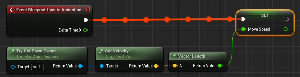 블루프린트에서 moveSpeed를 얻어옴 Character의 Get Velocity를 이용해서 Scala값으로 변환후 설정